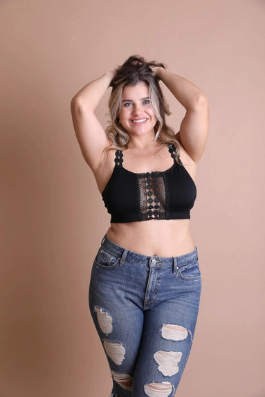 The Eye Lace Applique Bralette is a stunning piece that combines intricate detailing with comfort. The lace applique design is a focal point, adding a touch of elegance and sensuality. The bralette features a V-neckline that enhances its allure, while the adjustable straps ensure a customized fit. The scalloped edges offer a soft, feminine finish. This bralette is not just a piece of underwear but a statement piece that can be layered under sheer tops or worn alone for a daring look. It's the perfect blend of bohemian chic and modern sophistication.
